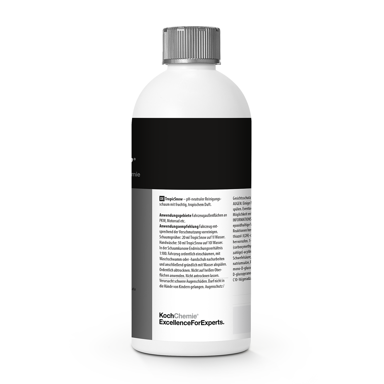 Finisher TropicSnow Active Foam je všestranný penový šampón s neutrálnym pH a ovocnou tropickou vôňou. Je ideálny na použitie s penovým delom, penovým rozprašovačom alebo na ručné umývanie auta. Zanecháva rovnomernú, priľnavú vrstvu peny , ktorá dlhodobo zostáva na povrchu a zaisťuje dôkladné čistenie. TropicSnow jemne a spoľahlivo odstraňuje nečistoty bez poškodenia existujúcich tmelov. Vďaka tomu zostáva lak chránený a lesklý a zároveň vozidlo optimálne čistí. Ideálny na pravidelnú starostlivosť o vozidlo a šetrné umývanie všetkých typov vozidiel. Výhody: • pH neutrálny penový šampón pre šetrné čistenie • Ovocná tropická vôňa • Priľnavá pena pre účinné odstraňovanie nečistôt • Chráni existujúce tmely • Všestranný na ručné umývanie, použitie v rozprašovači peny aj v penovacom delayeri Aplikácia: Vozidlo predčistite podľa stupňa znečistenia. Pre penové rozprašovače zmiešajte 20 ml TropicSnow s 1 litrom vody. Pre ručné umývanie zmiešajte 50 ml s 10 litrami vody. Pre penové kanóny použite konečný pomer miešania 1:100. Vozidlo dôkladne napeňte, v prípade potreby vpracujte umývacou rukavicou alebo špongiou, potom dôkladne opláchnite a osušte. Nepoužívajte na horúce povrchy a nenechajte zaschnúť. Vlastnosti produktu: • Obsah: 500 ml • pH neutrálny a jemný • Vhodný pre všetky vonkajšie povrchy vozidiel • Ovocná, tropická vôňa • Priľnavá pena pre účinné čistenie